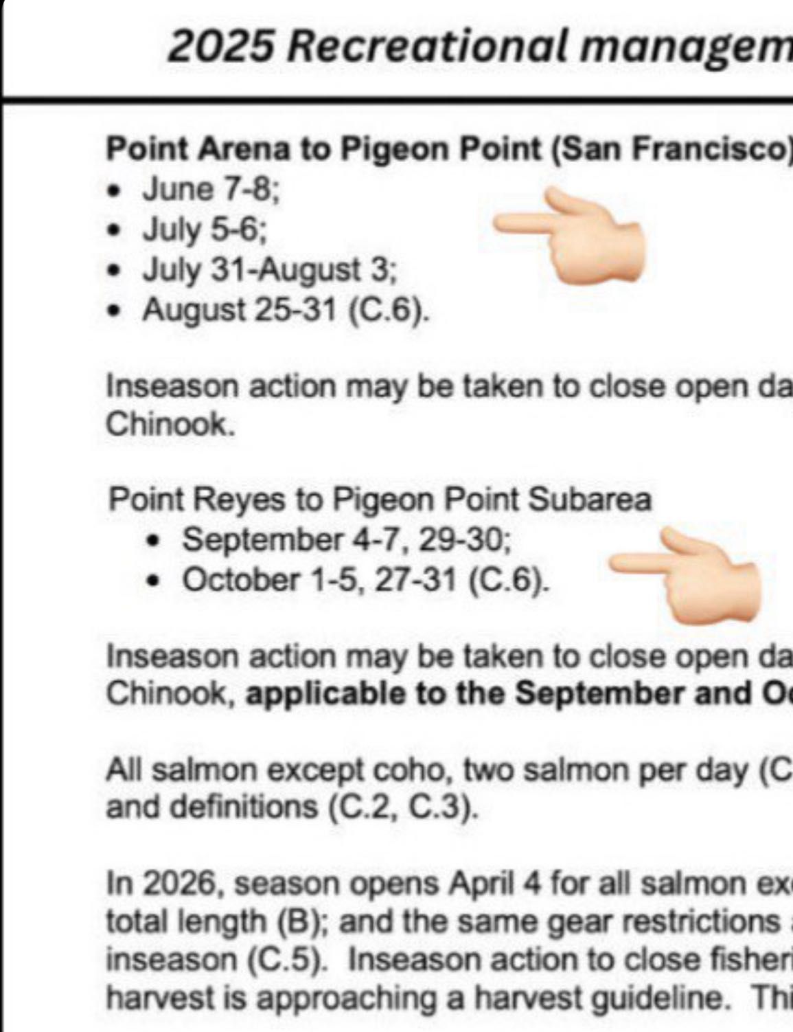 Alright, let's cut to the chase – Chinook salmon season is short, sweet, and in high demand. Once that 7,000 fish quota is hit, that's all she wrote for the year. If you're itching to test your skills against these hard-fighting kings, don't wait to book. Our trips fill up fast, especially on prime dates. Whether you're a die-hard salmon fanatic or looking to cross "catch a Chinook" off your bucket list, we've got you covered. Grab your spot now and get ready for some serious salmon action. Trust me, when you're reeling in a chrome-bright king with the California coastline as your backdrop, you'll be glad you didn't let this opportunity slip away. Let's make it happen – the kings are waiting!